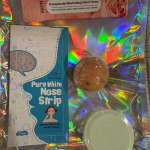 ✔ Includes handpicked pampering essentials: face mask, hair mask, under eye mask, lip mask, foot mask, hand cream, bath bomb, shower steamer and nose pore strip. (Scents may vary)