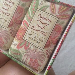 100% new! Passion flower and olive oil shea butter spa soap! Bought too much of this and never opened this one. Made in USA. No trade but welcome for any reasonable offers! :)