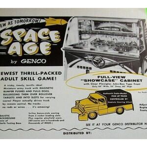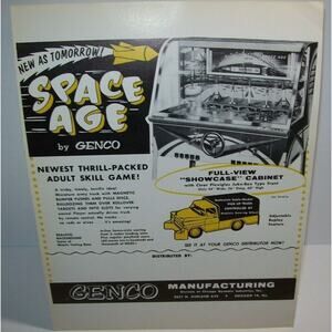 Space Age Arcade Game FLYER Genco 1958 Original NOS Vintage Ephemera Art Sheet