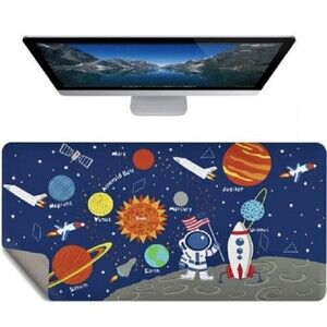 Space Astronaut Computer Desk Pad Solar System Rocket Non-Slip Mat 31.5" x 16.7"