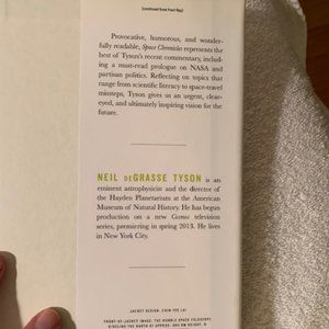 "Space Chronicles" by Neil deGrasse Tyson. This hard cover book is in excellent condition.