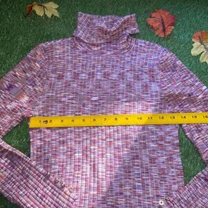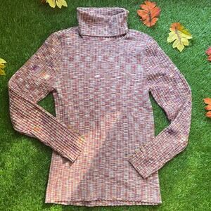 Space Dyed Ribbed Turtleneck with Gold Button Cuff Accents