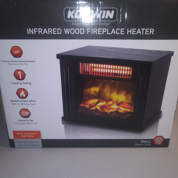 Infared Wood Fireplace Heater. Perfect for under the desk or on the counter. Unit size - 9.8 in W x 6.6 in D x 8.0 in H.