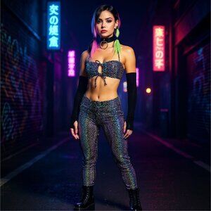 Under neon skies or strobe-lit dancefloors, this bra top radiates otherworldly charm.
