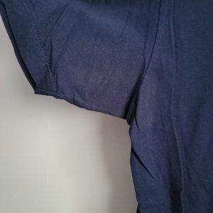 Never been worn shirt that has no staining and no holes. The print is in perfect shape too with no cracking or fading. Small spot on shoulder as seen in photos but will come off in the wash. There is no fading I have poor lighting in the room.