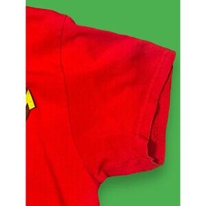 Show off your love for classic cartoons with this Space Jam T-Shirt featuring Bugs Bunny, Daffy Duck, Tasmanian Devil, Sylvester, and Wile E. Coyote. The red knit shirt has a crew neck and short sleeves, making it the perfect addition to any unisex adult's wardrobe. The graphic print and logo accents add a fun touch to this regular fit t-shirt. Available in size small, this shirt is sure to be a hit with any fan of the Space Jam movie or cartoon theme.
