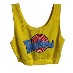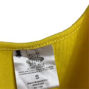 Size small Space Jam Tune Squad yellow crop tank in excellent used condition. Ribbed terry material. 60% cotton. 40% polyester. 32 inch bust with stretch. 13.5 inch length.