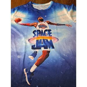 Good Used Condition Unisex Estimated Size XL (The Tags Are Missing- Please See Measurements) Space Jam Tune Squad Labron James Basketball Movie Short Sleeve Crew Neck Pullover Tee T-shirt Top Shirt