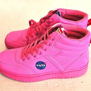 SPACE NASA RIDE RETRO HI TOP WOMEN'S REFLECTIVE PINK LACE UP SHOES SIZE: 8M NS203241