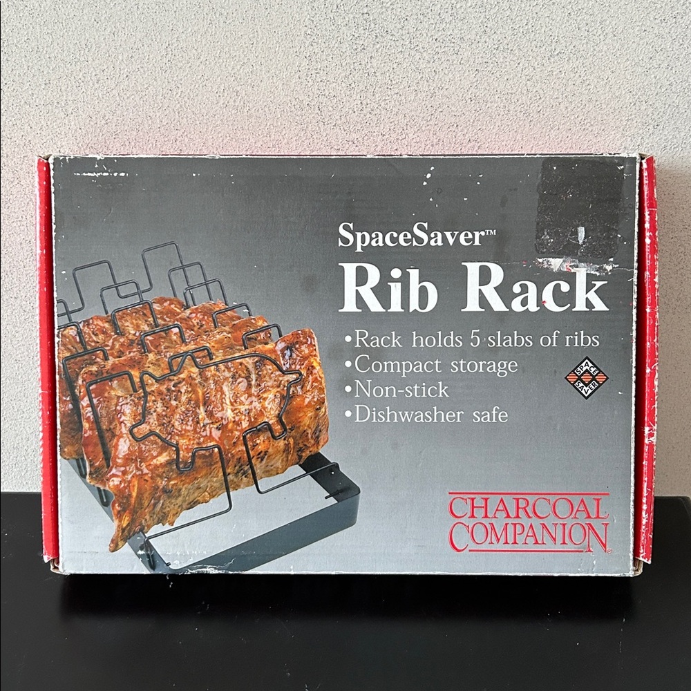 Holds 5 rack of ribs. Compact storage. Non-stick. Dishwasher safe.
