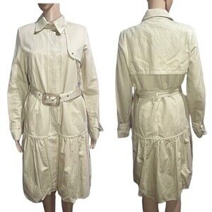 Space Style Concept Ruffle Bottom Belted Trench Coat Italy Size 42