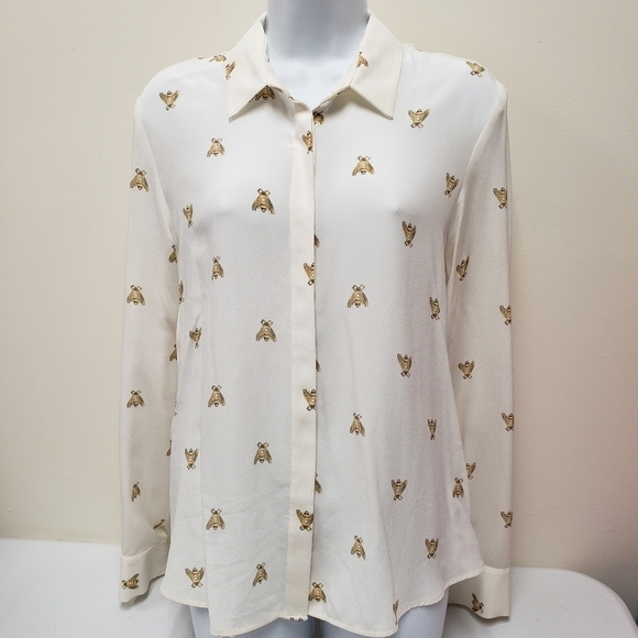 Space Style Concept Womens Silk Bee Print Top Size 6.