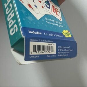 Explore the universe with these space-themed playing cards. Features vibrant planets and stars. Box is opened, but cards are still sealed inside! From Mindware and Peaceable KIngdom.