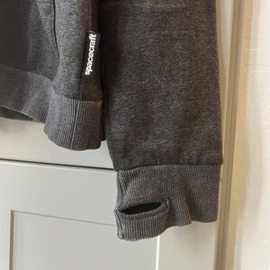 Condition: has light wear on the stitching/felt embroidery! There are also no drawstrings and wear on the thumb holes