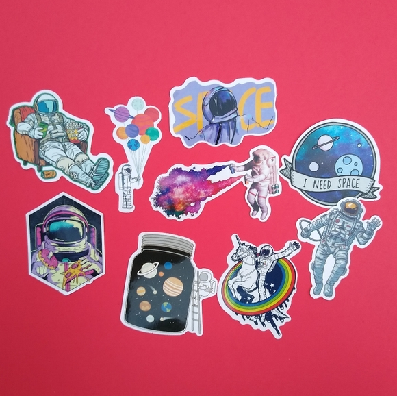 10 piece lot of spaces / astronaut stickers. Add them to your notebook, laptop, suitcase & more!!!