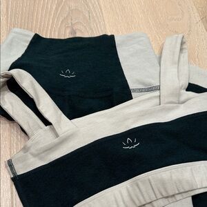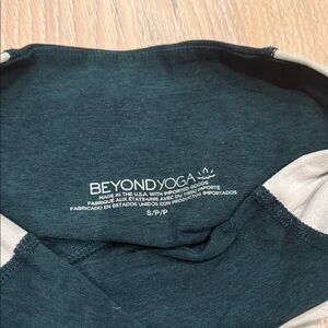 Beyond yoga. Size small leggings, size medium sports bra. High waist legging with color block/slimming detail. Square neck line for bra top. Pre-worn items.