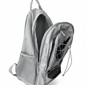 Trendy grey 3 pocket backpack. Great for travel, school and much more! dual pocket on the side.