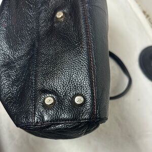 This roomy black leather tote features a textured finish and a classic design, making it ideal for work or travel. Its structured shape and sturdy handles offer both style and functionality. See all photos as they are part of description