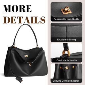 Features: Crafted from premium top-grain cowhide, this tote feels soft and durable with a sleek, sophisticated vibe. It features a large main compartment with 2 slip pockets and a zippered pocket for organized storage, plus back card slots. Side buttons offer extra space when unbuttoned—ideal for traveling or everyday essentials like your iPad, wallet, and makeup.
