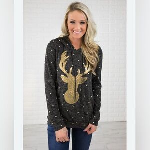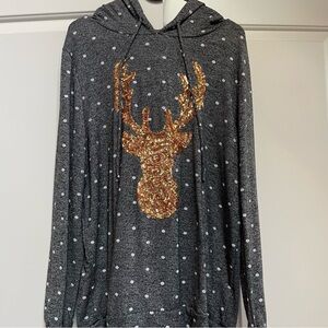 Spadehill Lightweight Novelty Reindeer Polka Dot Long Sleeve Sequined Hoodie
