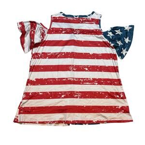 Spadehill NWOT USA Flag Cold Shoulder Button Down Blouse Size L Patriotic Top