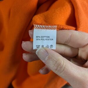 Classic pullover hoodie. No front pocket. Two white stripes on each sleeve. Black jack-o-lantern print on the front. Super soft fleece on the inside.