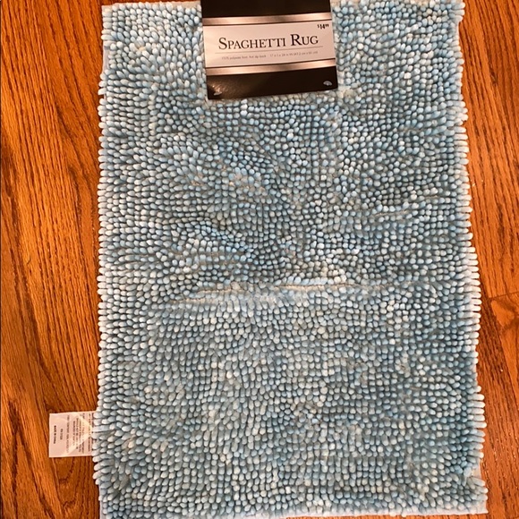 Brand new with tags chenille-like feel area rug. Your feet will melt into this area rug. Sea foam like color. Add a pop of color to a small area to give it the wow look. Rug size is 17in x 24”