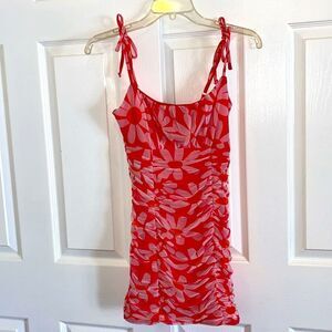 Never used excellent condition,beautiful mesh rushed spaghetti mini dress,zip back,fully lined,stretch