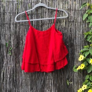 Red BP flowy layered tank-top.