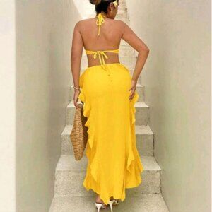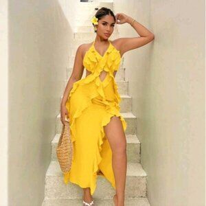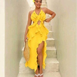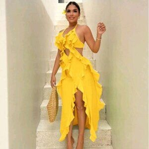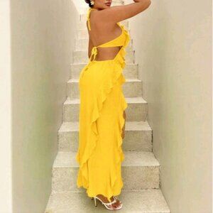 Spaghetti Strap Backless Sleeveless Dress With Ruffle Hem