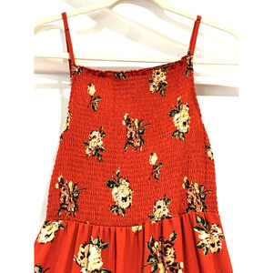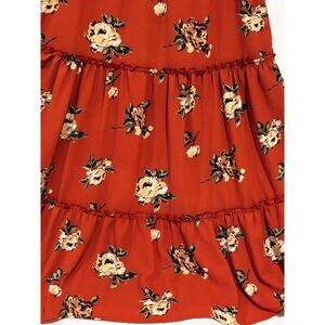 Spaghetti Strap Bohemian Maxi floral ruffled dress Rust sz M Peasant Cottagecore