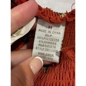 Spaghetti Strap Bohemian Maxi floral ruffled dress Rust sz M BBQ Peasant flowy In excellent condition, bodice has stretch back for comfort This Spaghetti Strap Bohemian Maxi floral ruffled dress in Rust is perfect for a casual day out or a party. The dress features a square neckline and a pullover closure, making it easy to wear. Made from a blend of polyester and spandex, it offers a comfortable fit and a flowy, peasant-like style. The long dress length and sleeveless design are ideal for warm weather, while the brown floral pattern adds a touch of bohemian flair to the outfit. Machine washable for easy care, this dress by Mimi Chica is a versatile addition to any woman's wardrobe.