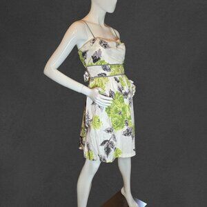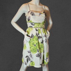 Spaghetti straps (adjustable) and a slight empire waist make this sundress by COREY P the perfect addition to your closet with beautiful Spring colors of green and white. Very good preowned condition.