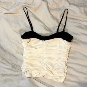 Spaghetti Strap Camisole w/ Lace Trim | FN Love Galore Ruched Tank Top White/Blk