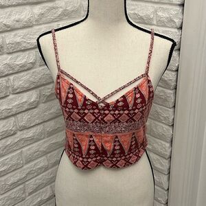Gorgeous spaghetti strap crop top! Colors are totally eye catching and geometric shapes make this piece so very unique. Super soft fabric. Item is new without tags.