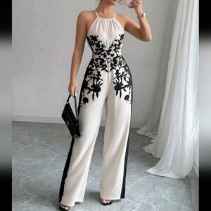 Spaghetti Strap Floral Print High Waist Loose Straight Wide Leg Jumpsuit