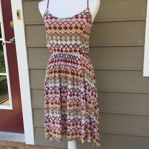 Southwest style with spaghetti straps pleated waist with handkerchief hem