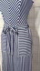 Stylish dark navy and white striped jumpsuit with tie straps and waist belt. Perfect for casual outings.