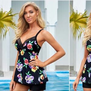 NWT Spaghetti Strap Pansy Print Swimwear Top