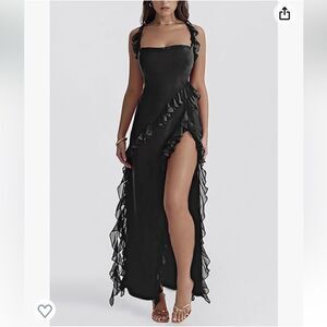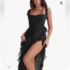 You will get 1 piece Ruffle Maxi Dress for Women Spaghetti Strap Sleeveless V Neck Backless Ruffle High Split Beach Party Long Dress