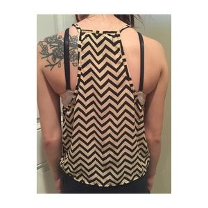 Tan and black zig zag designed spaghetti strap crop top. Always open to Offers and Trades! Just trying to clean out my closet! So if you're interested make me an offer! 😊