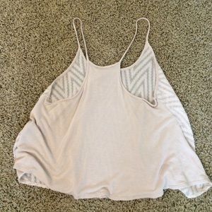 Blush color. Sheer in front of the shirt. Print: Zig Zag. Razorback.