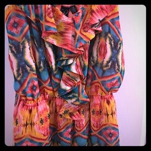 Worn only once. Super comfortable with ruffles on the front. Great color pattern for the summer!
