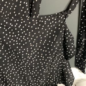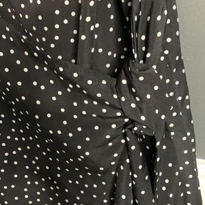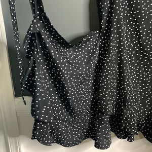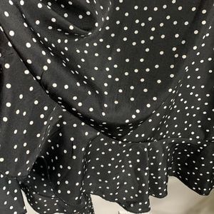 • Flattering False Wrap with Ties and Ruffle that Flows to the Hem