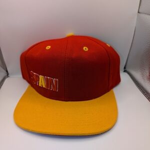 Stylish Spain kids cap in vibrant red and yellow. Perfect for sunny days and showing off team spirit.