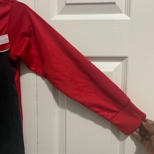 Spalding “True to the game “ kids jacket. Size small (8). Red, black and white. 100% polyester. Used. Please see all the pictures.