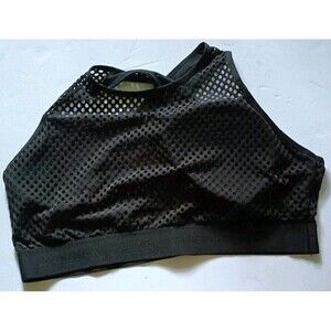 Spalding Fish Net Sports Bra Plus Size 2X Black High Neck Criss Cross Back No Padding Excellent Pre-owned Condition