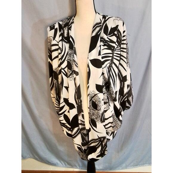 Barone batwing kimono style cover-up ,black and white tropical print.
