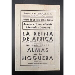 Spanish African Queen Movie Herald Handbill Katherine Hepburn Humphrey Bogart