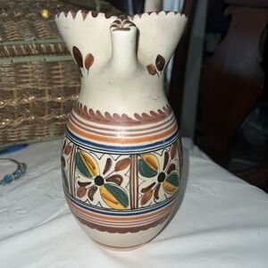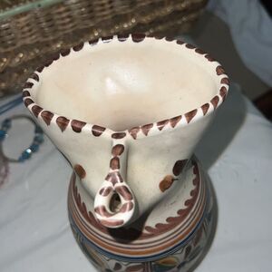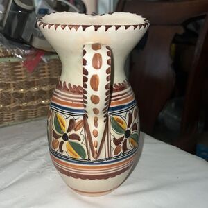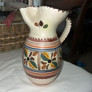 Spanish Hand Painted Folk Art Floral Motif Ceramic Pitcher